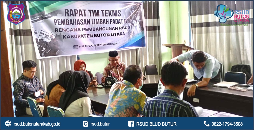Pemerintah Kabupaten Buton Utara melalui Dinas Lingkungan Hidup (DLH) bersama Tim Teknis Perizinan melaksanakan Rapat Teknis Pembahasan Limbah Padat Bahan Berbahaya dan Beracun (B3) dalam rangka rencana pembangunan gedung RSUD Kabupaten Buton Utara.