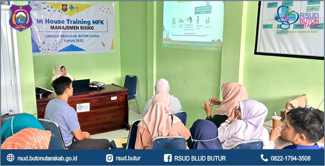 Dalam upaya memperkuat penerapan sistem keselamatan dan mutu layanan rumah sakit, RSUD Kabupaten Buton Utara menyelenggarakan kegiatan In House Training (IHT) Manajemen Fasilitas dan Keselamatan (MFK) dengan tema “Manajemen Risiko di Lingkup RSUD Kabupaten Buton Utara”.